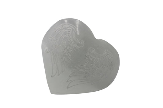 Selenite Heart Etched Wing Pattern