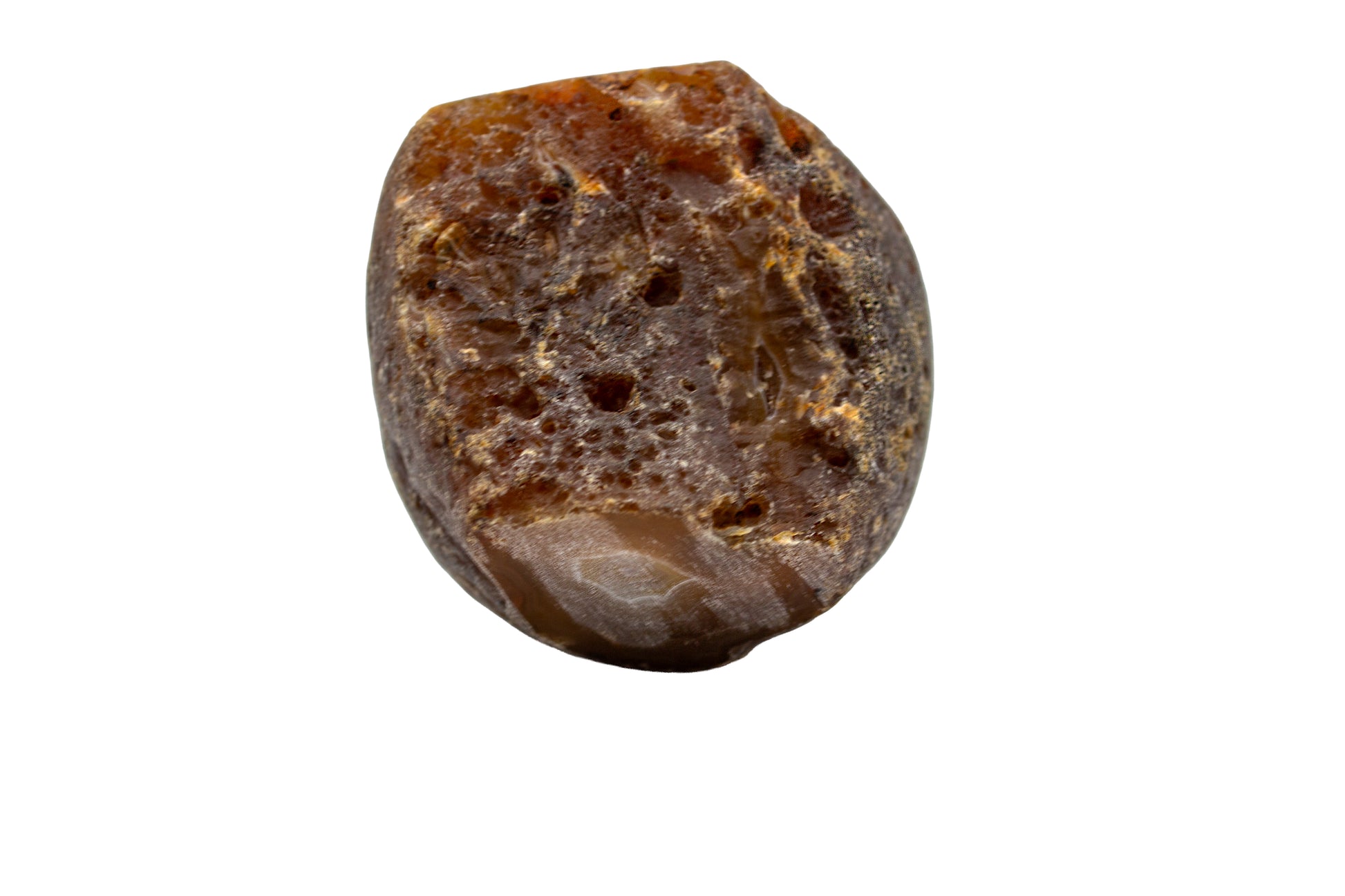 A banded variety of Chalcedony, a Quartz mineral, with pink, brown, and gray layers.