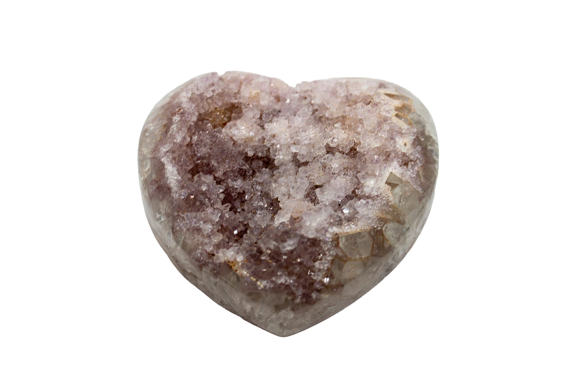 Amethyst is a purple variety of quartz that gets its color from irradiation and inclusions of iron in the crystal lattice. Amethyst has been prized for thousands of years as a gemstone, commonly being used in jewelry. Ancient Greeks believed that amethyst prevented the intoxicating effects of alcohol. Amethyst was considered a precious gem until the 18th century when large deposits were discovered in South America. This piece is polished into a heart shape.
