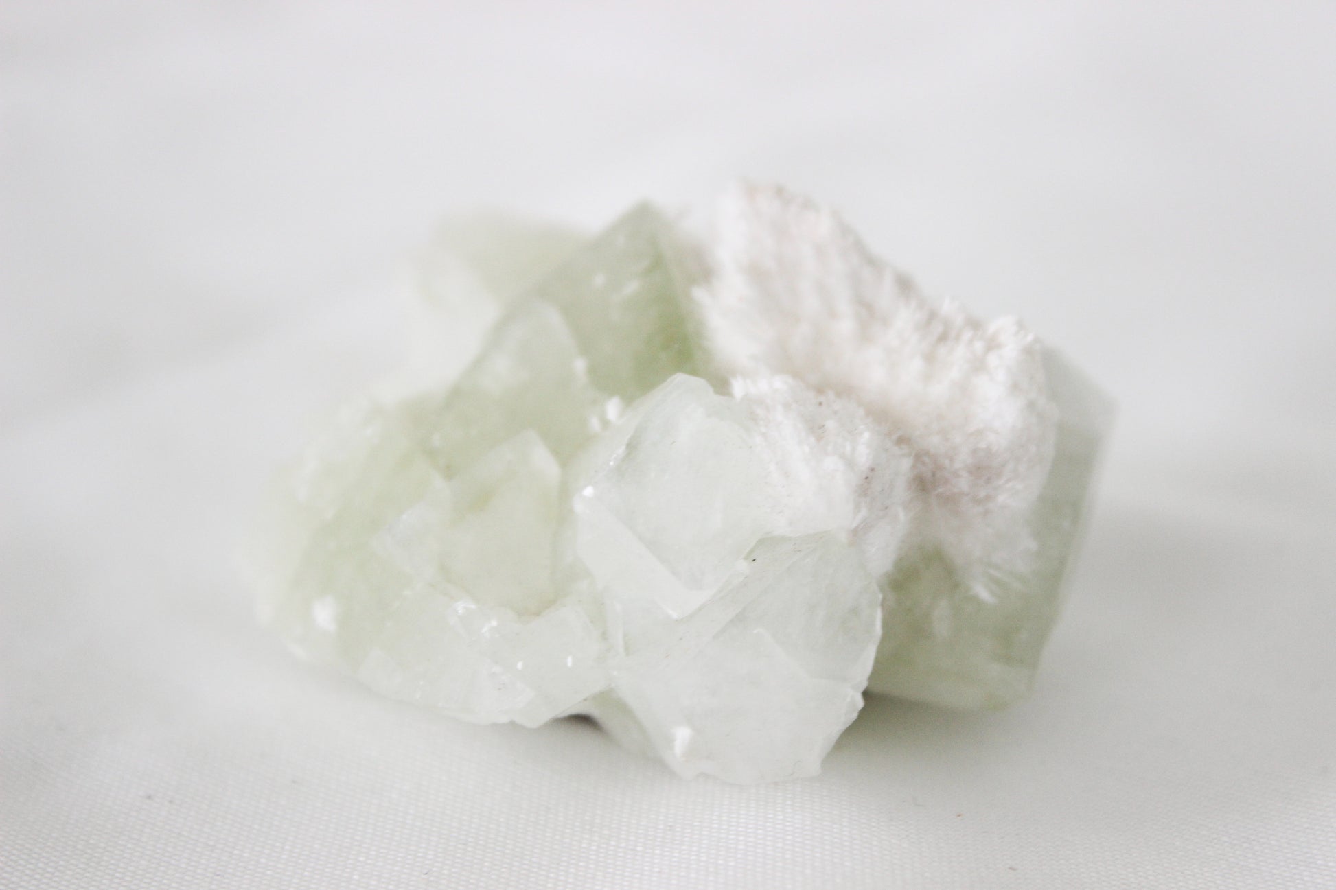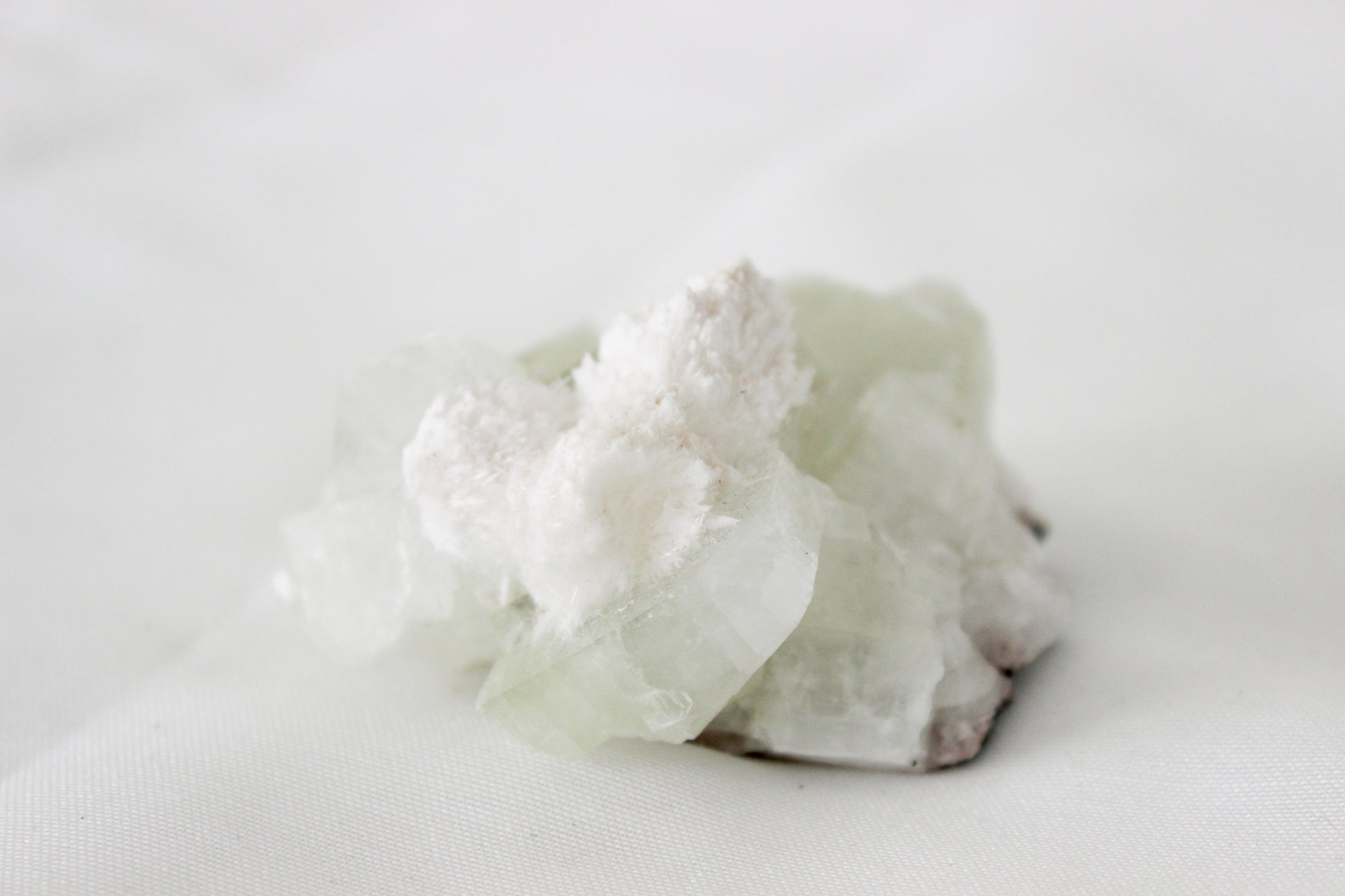 Apophyllite is a group of minerals and has many species. The most common types are Hydroxyapophyllite and Fluorapophyllite. Visually, both species look alike so the generic name "Apophyllite" is used. Common colors are clear, white and green.