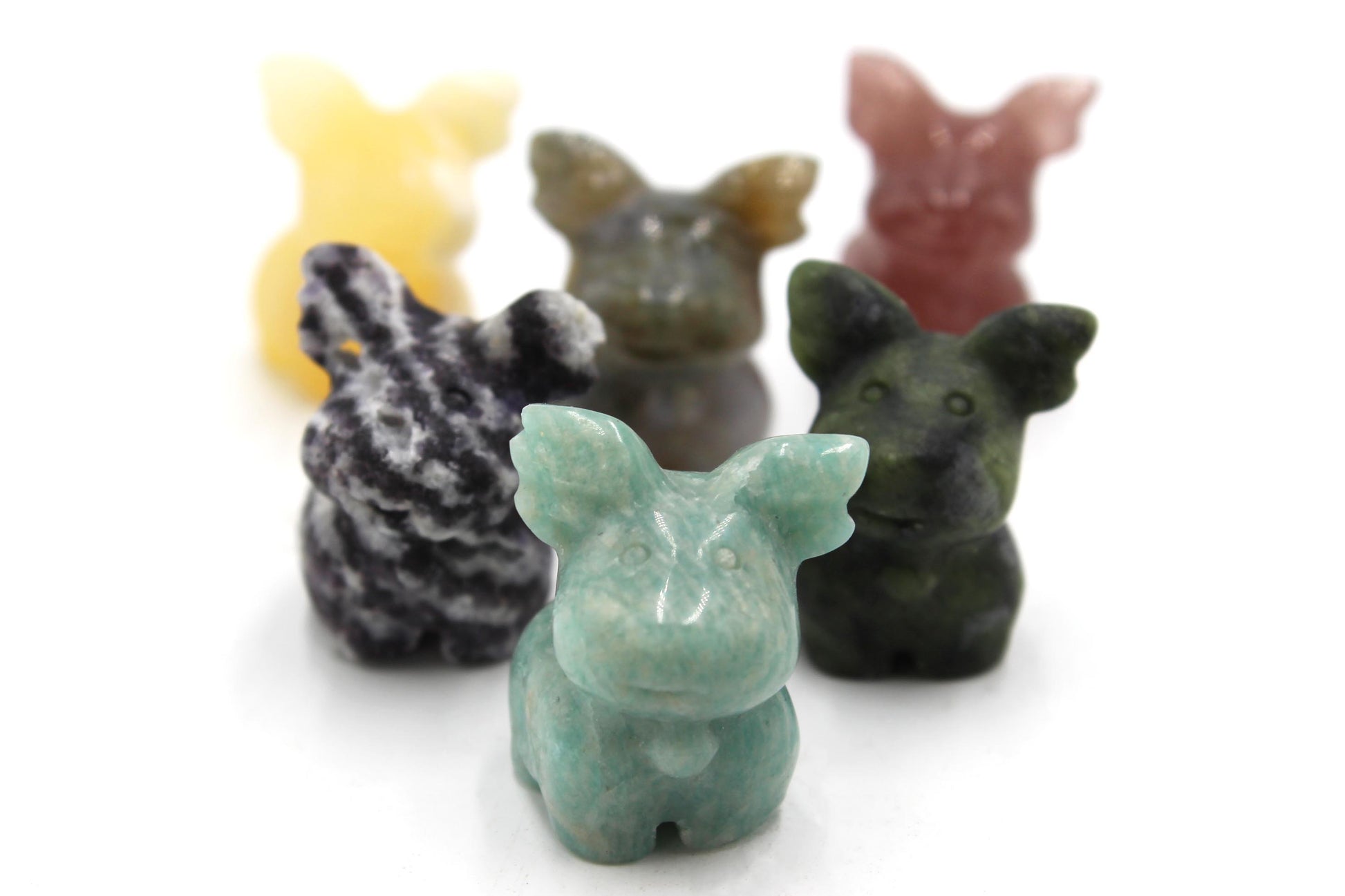 Trinket sized, hand carved tumbles from China with a variation in mineral per piece.